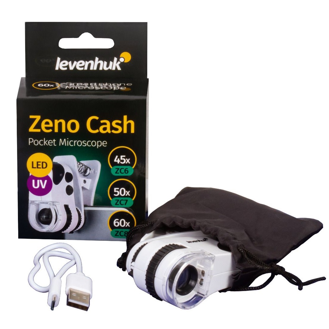 Το μικροσκόπιο τσέπης Levenhuk Zeno Cash ZC6 είναι ένα μεγεθυντικό εργαλείο με ενσωματωμένο φωτισμό. Χάρη στη φωτεινή πηγή του μπορεί να χρησιμοποιηθεί και για έλεγχο γνησιότητας χαρτονομισμάτων. Αυτό το μικροσκόπιο είναι μικρό σε διαστάσεις και ελαφρύ. Μπορείτε εύκολα να το παίρνετε μαζί σας σε επαγγελματικές συναντήσεις ή στα ταξίδια σας. Είναι χρήσιμο στα σούπερ μάρκετ: μπορείτε να ελέγξετε κάθε χαρτονόμισμα που έχετε.