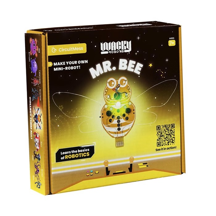 Γνωρίστε τον Mr. Bee, ένα DIY Wacky Robot που θα σας εισαγάγει στον συναρπαστικό κόσμο της ρομποτικής και του STEM. Με τον Mr.Bee, θα μάθετε για τα διάφορα ηλεκτρονικά εξαρτήματα, τους κινητήρες δόνησης και την αντίσταση. Στο τέλος, θα έχετε μια χαριτωμένη ρομποτική μέλισσα!
