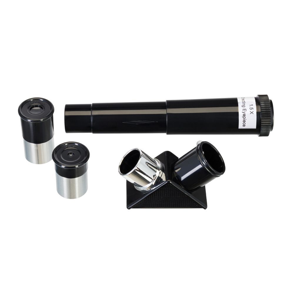 Το τηλεσκόπιο συνοδεύεται από όλα τα απαραίτητα για τις παρατηρήσεις αξεσουάρ, ώστε να μπορεί να αποτελέσει το τέλειο δώρο! Στη συσκευασία περιλαμβάνεται και βαλιτσάκι μεταφοράς και αποθήκευσης, με βολική λαβή, κατασκευασμένο από ανθεκτικό πλαστικό. Στο βαλιτσάκι χωράει ολόκληρο το τηλεσκόπιο, μαζί με τα αξεσουάρ του.